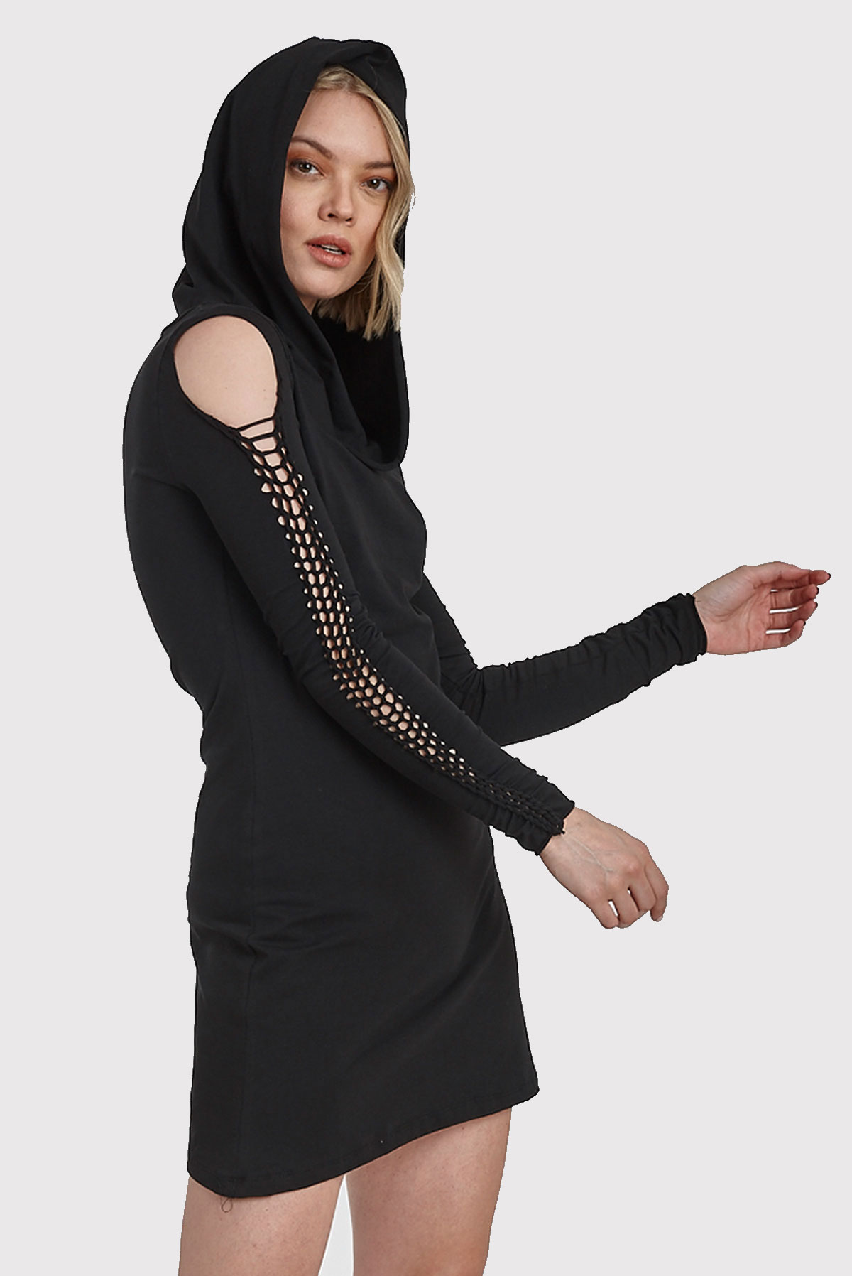 Αμάνικο Φόρεμα με κουκούλα και κοψίματα με πλέξιμο