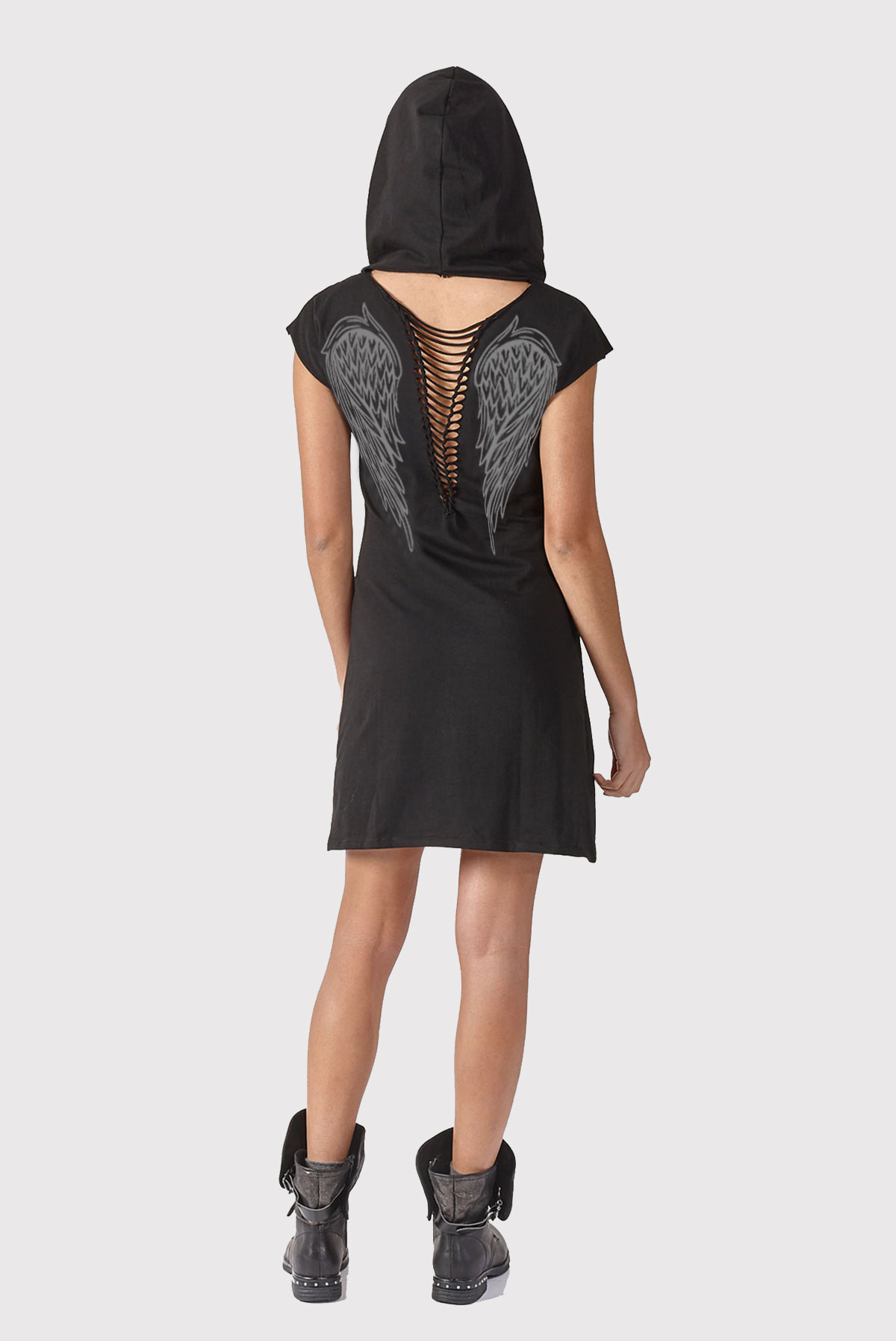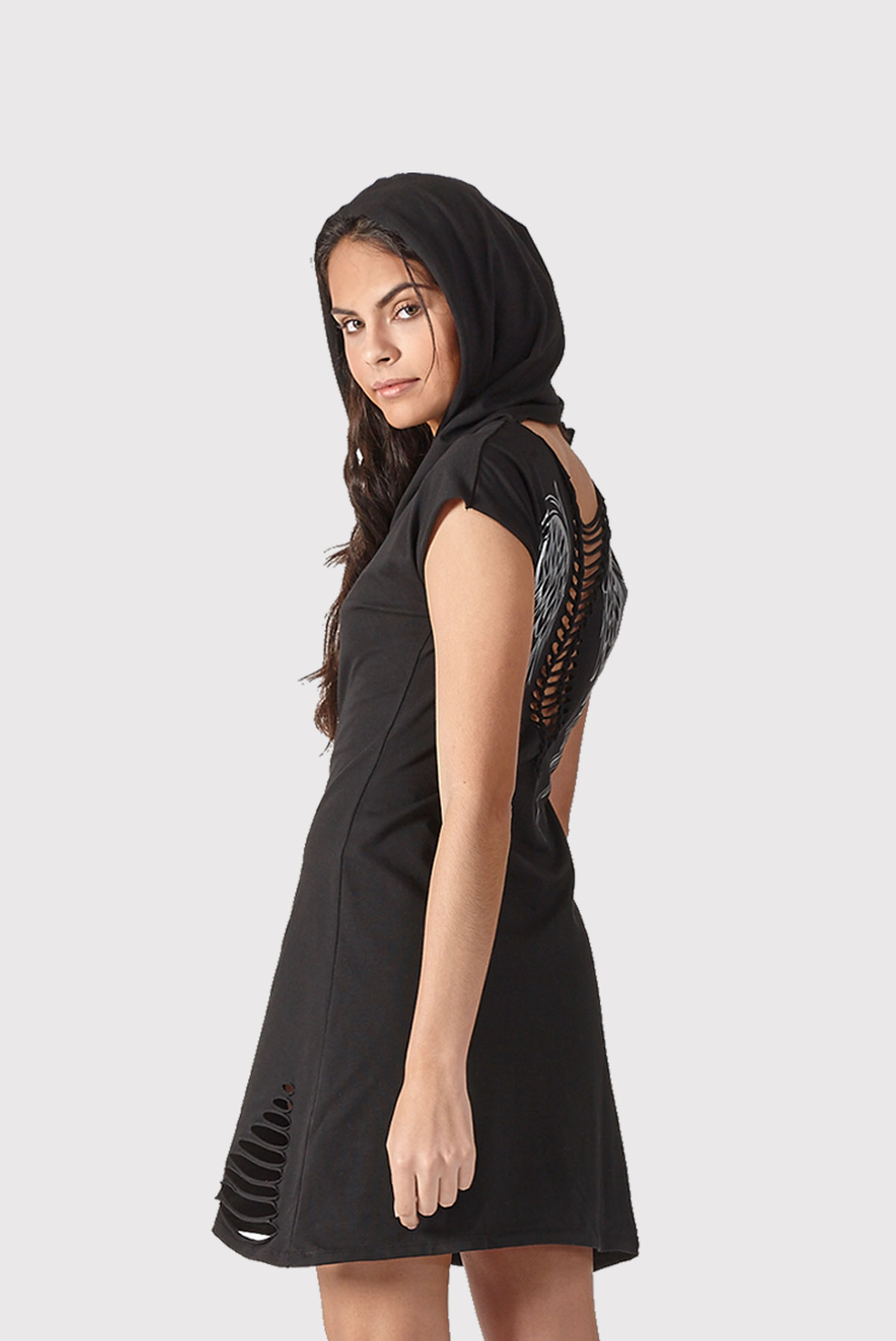 Γυναικείο Φόρεμα με κοψίματα με πλέξιμο και το τύπωμα Angel Wings σε ασημένιο μεταλλικό τύπωμα.