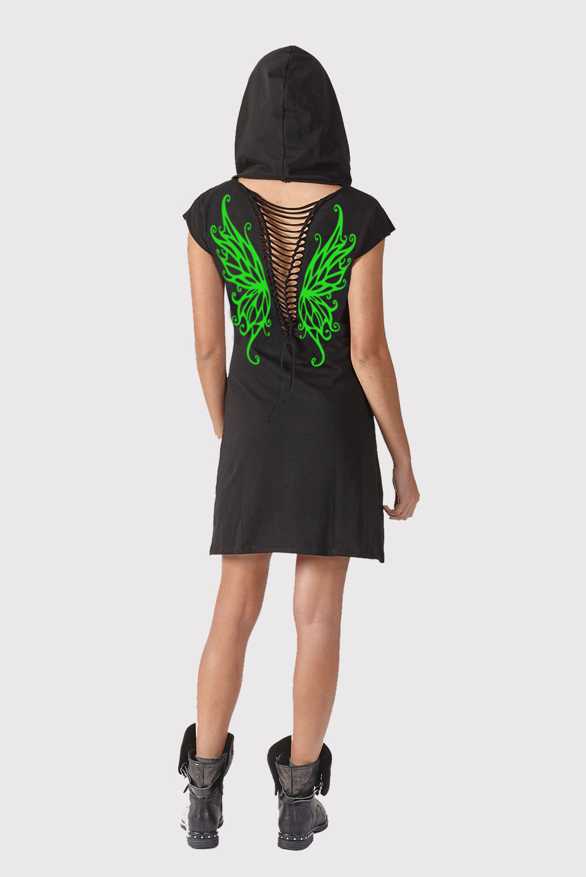 Γυναικείο Φόρεμα με κοψίματα με πλέξιμο και το τύπωμα Butterfly Wings που Φωσφορίζει στην blacklight λάμπα Νέον.