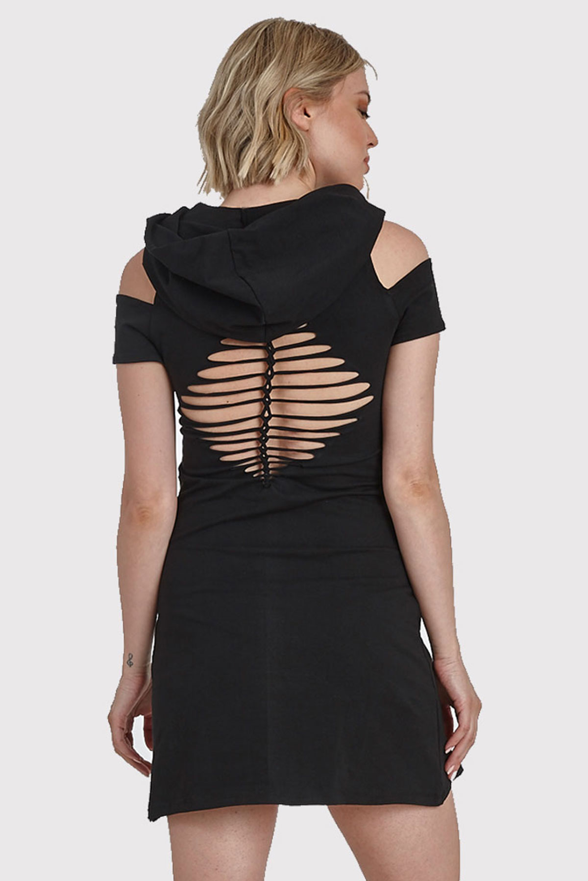 Γυναικείο Φόρεμα με κουκούλα και κοψίματα με πλέξιμο.